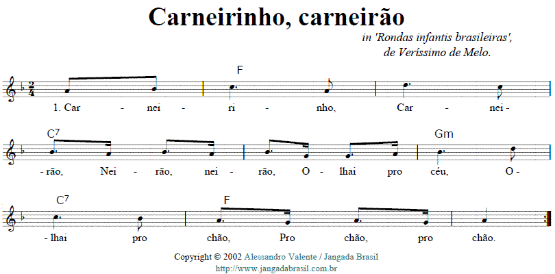 Carneirinho, carneirão Neirão, neirão Olhai pro céu Olhai pro chão Pro chão, pro chão