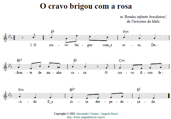 O cravo brigou com a rosa Debaixo de uma sacada O cravo ficou ferido E a rosa despetalada