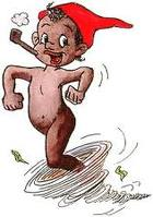 O Saci-Pererê é uma lenda do folclore brasileiro e originou-se entre as tribos indígenas do sul do Brasil. O saci possui apenas uma perna, usa um gorro vermelho e sempre está com um cachimbo na boca. O saci adora fazer travessuras e ele é muito brincalhão. Segundo a lenda, o Saci vem nos redemoinhos de vento e pode ser capturado jogando uma peneira sobre os redemoinhos. Após a captura, deve-se retirar o capuz da criatura para garantir sua obediência e prendê-lo em uma garrafa. |